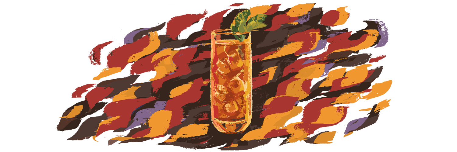The city bustles with joyful chaos, bursts of brassy synth like the rhythmic sparkle of white lines on a highway. Shoulder pads, pinstripes, street signs. A dash of ginger beer provides a moment of cool respite in the red brick shade. Suddenly, the spicy notes of a ferocious saxophone, whirling above the fray. The wild, complex delight of whiskey, Cointreau, and lemon, the infinite zest of a city.